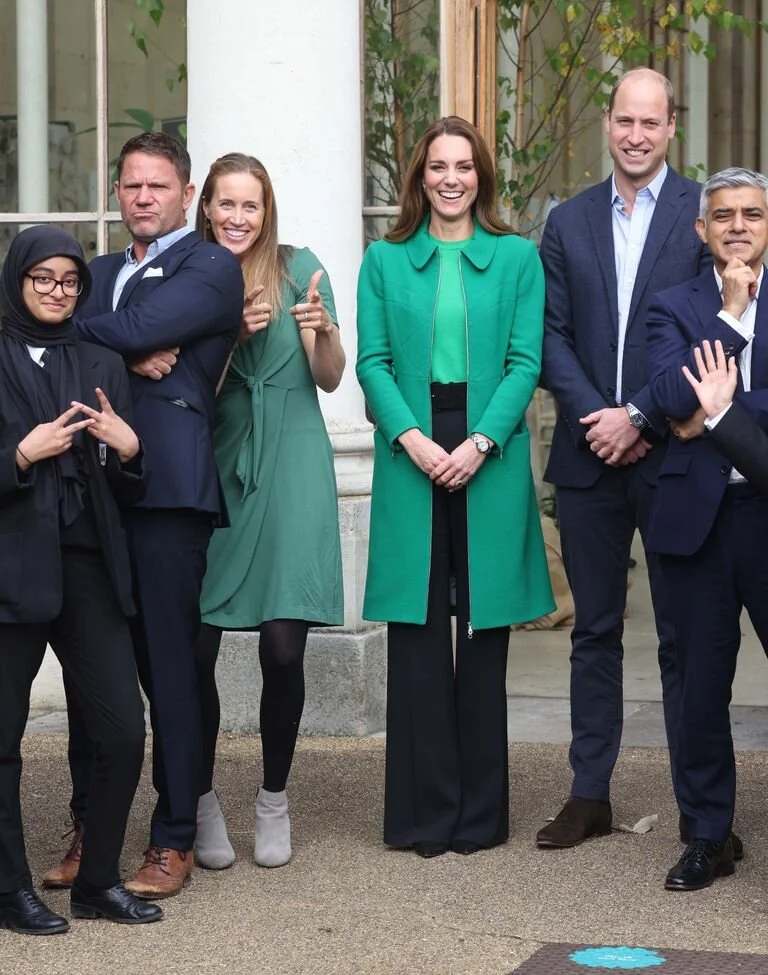 Fall is in full swing, and Kate Middleton fully embraced the season's fashion this at Kew Gardens for her and Prince William's Generation Earthshot event with school children. Kate dressed fittingly in green for the environment-focused engagement. She paired an open, collared emerald coat with a lighter green short-sleeved sweater and black slacks. She wore her hair down and accessorized with black heels.